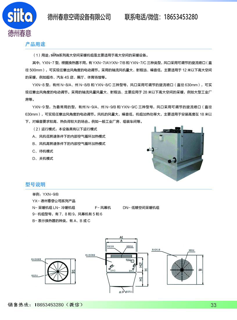 德州春意siita高大空間空調器是德州春意空調設備有限公司新研發的高大空間采暖機組@高大空間空調機組@高大空間冷暖機組。該系列產品涵蓋了供熱、制冷、通風、凈化等多重功能,結合綠色環保、低碳節能的設計理念,力求提升人類生活環境舒適度。