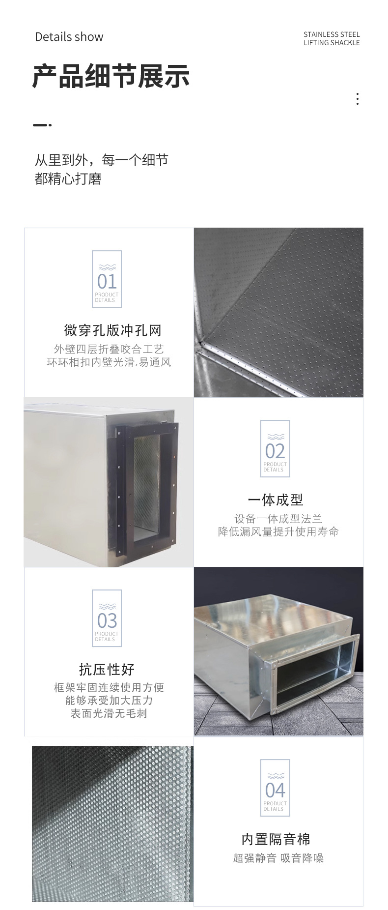 不僅如此,消聲靜壓箱采用優(yōu)質(zhì)材料打造,結(jié)構(gòu)堅固耐用,適應(yīng)多種復(fù)雜環(huán)境,安裝簡便靈活,可根據(jù)不同需求定制規(guī)格。無論是大型商業(yè)綜合體、數(shù)據(jù)中心,還是食品加工廠、制藥車間,它都能發(fā)揮關(guān)鍵作用,提升通風系統(tǒng)的整體性能。